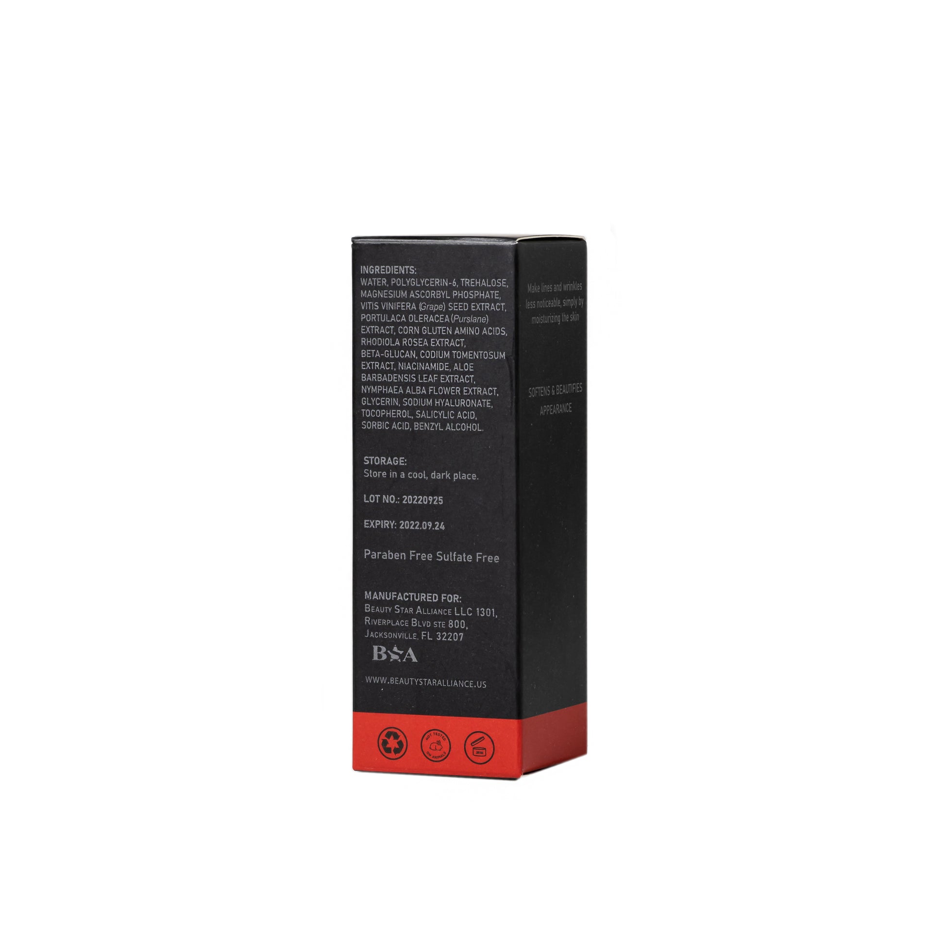 Вода, полігліцерин-6, трегалоза, магнію аскорбілфосфат, екстракт насіння винограду, екстракт портулаку, амінокислоти кукурудзяного глютену, екстракт родіоли рожевої, бета-глюкан, екстракт кодіуму томентозум, ніацинамід, екстракт листя алое вера, екстракт квітів білого латаття, гліцерин, гіалуронат натрію, токоферол, саліцилова кислота, сорбінова кислота, бензиловий спирт.